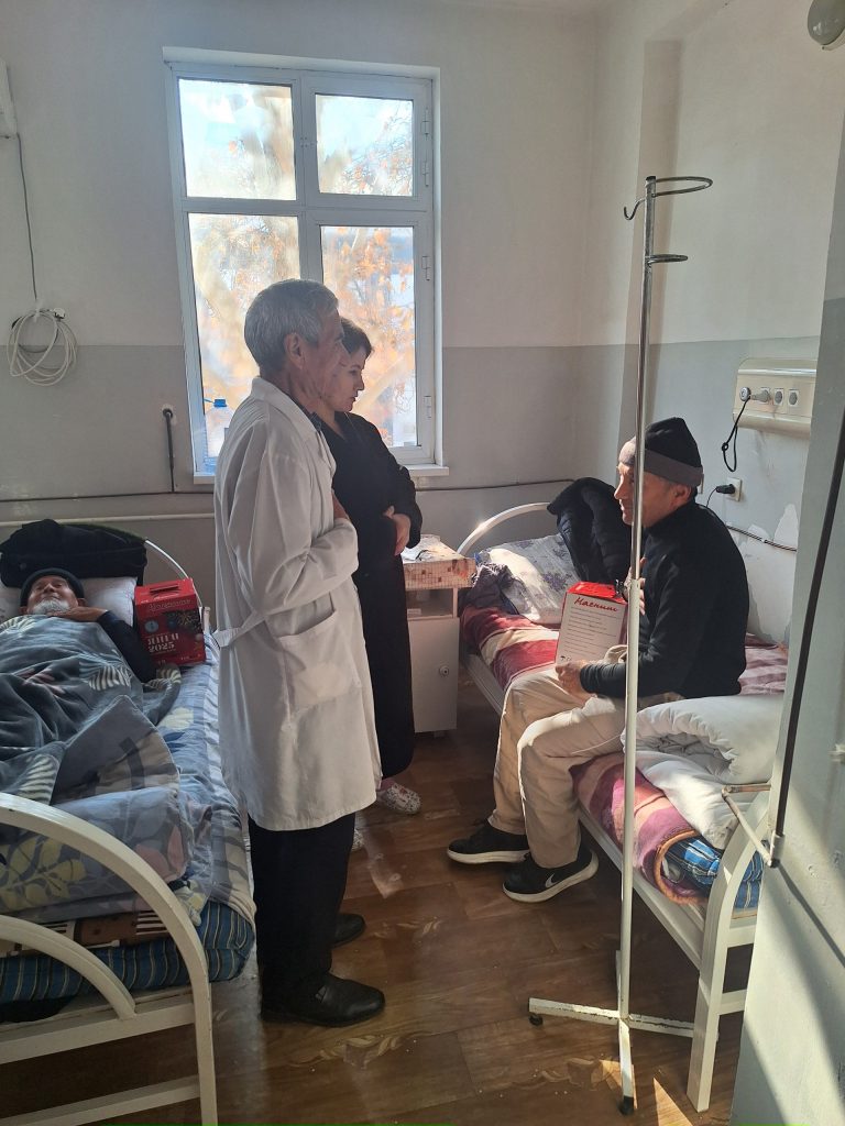 Жорий йилнинг 28 декабрь куни филиал директори Д.Джураева ва филиал шифокори Б.Худоёров, вилоят болалар ва катталар кўп тармоқли тиббиёт маркази “Гематология” бўлими ходимлари билан ҳамкорликда бўлимда даволанаётган беморларга “Янги йил” совғалари тарқатилди.